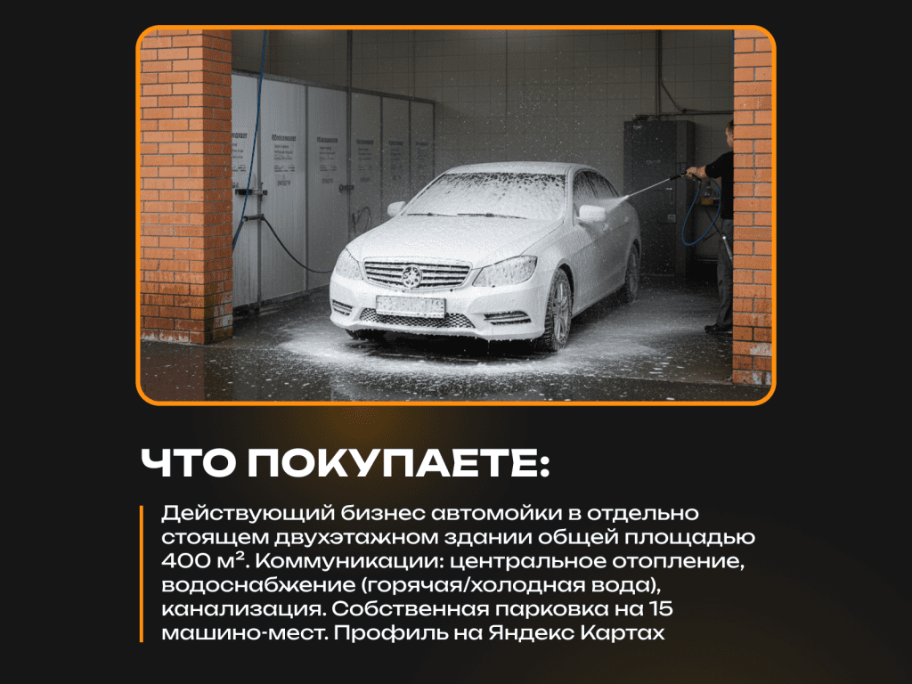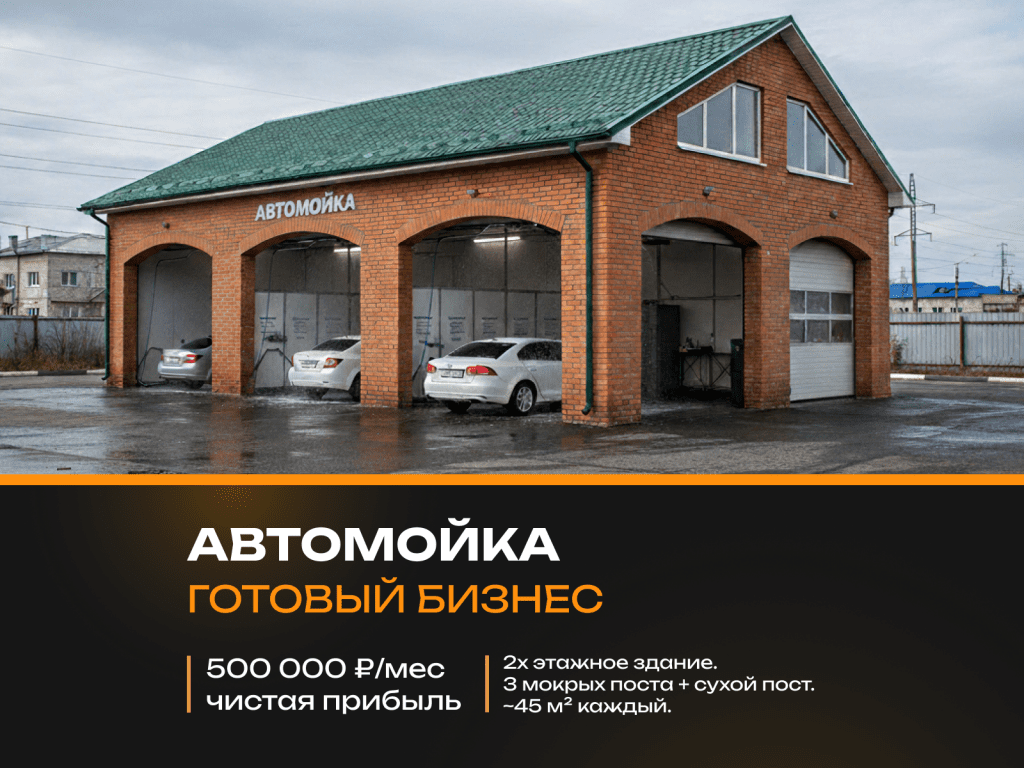 400 м², 3 мокрых поста + сухой пост, собственная парковка на 15 машин и отсутствие прямых конкурентов в радиусе ~5 км.