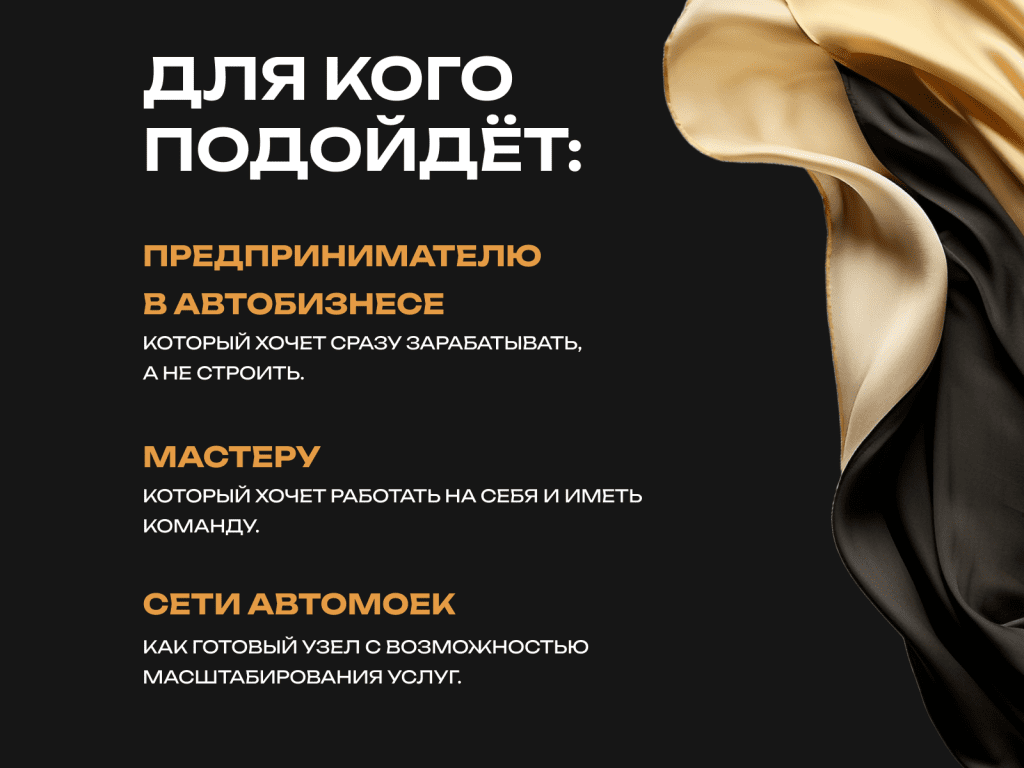 Предприниматель в автобизнесе (мойка, детейлинг, шины), который хочет сразу зарабатывать, а не строить.