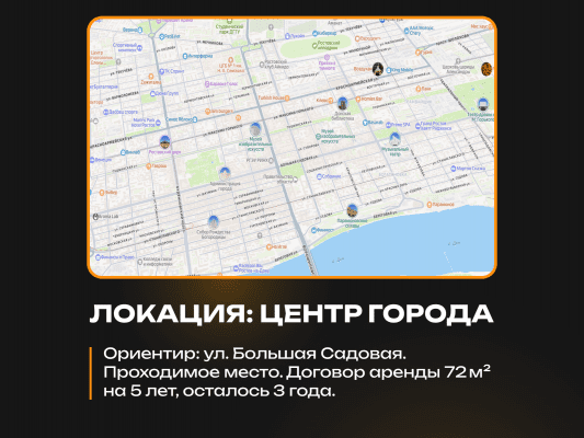 🔸 Локация: центр (ориентир — ул. Большая Садовая), устойчивый поток клиентов; востребованная косметология в центре Ростова-на-Дону.