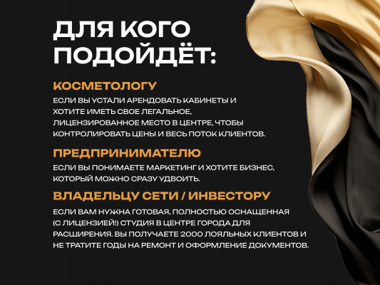 🔸 Коммерческий объект подходит тем, кто ищет готовый бизнес в косметологии, аппаратную косметологию купить, готовый салон красоты в Ростове.