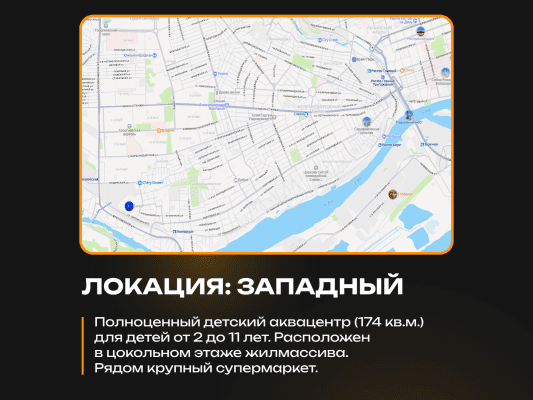 • Единственный детский аквацентр рядом — спрос стабильный и предсказуемый.
