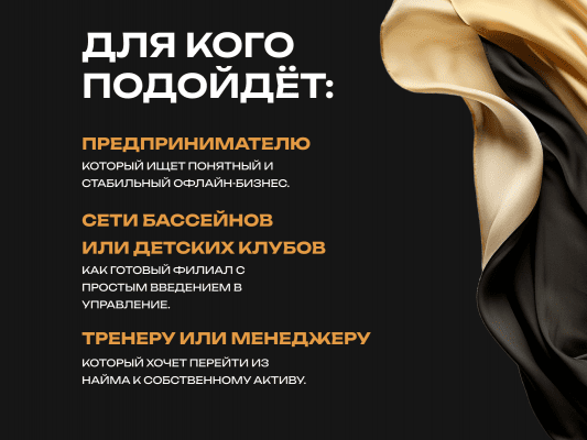 • Сети бассейнов или детских клубов — как готовый филиал с простым введением в управление.
