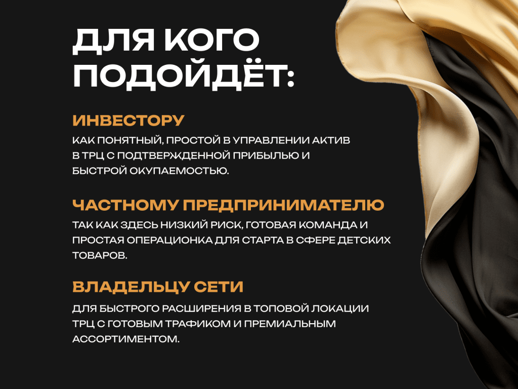 • Инвесторам, которым нужен стабильный, понятный офлайн-бизнес.