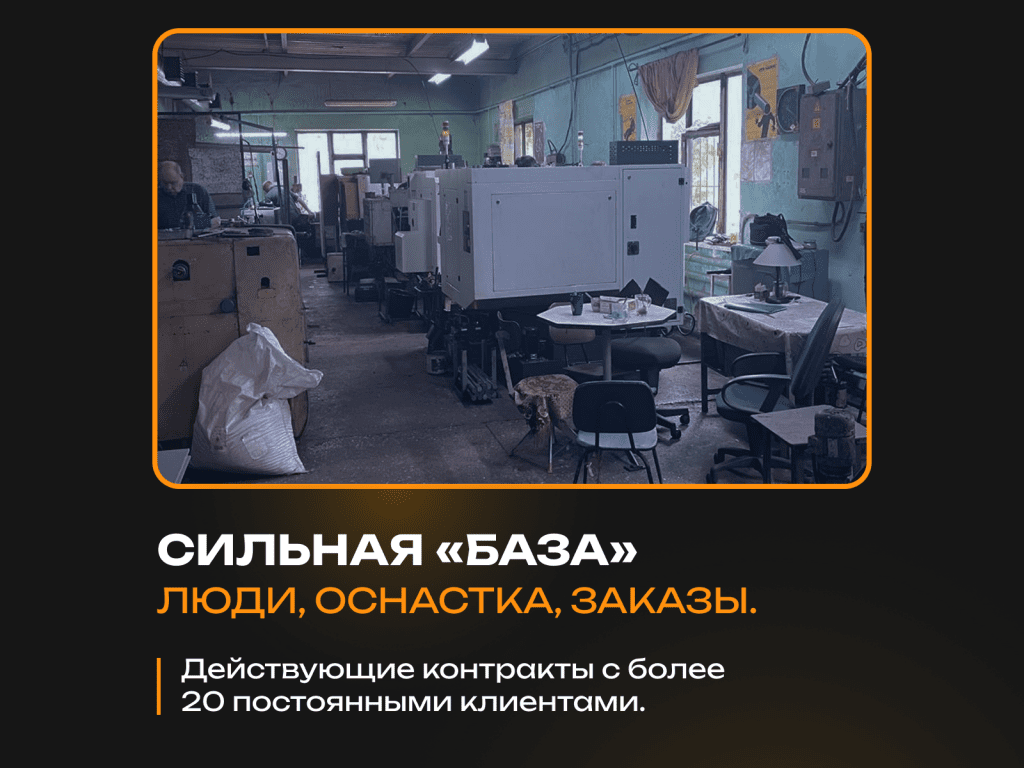 Производственная база в аренде, парк токарно-фрезерного и шлифовального оборудования, инструмент и оснастка, ТД, материальные остатки, готовая продукция, незавершёнка, товарный знак, персонал и действующие договоры (передача по актам).
