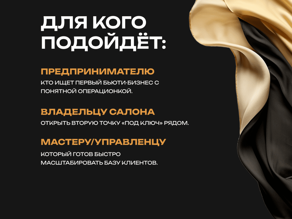 • Предпринимателю, кто ищет первый бьюти-бизнес с понятной операционкой.