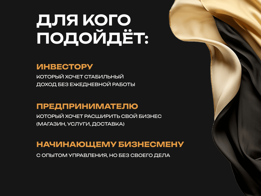 • Операционному предпринимателю, который хочет получать стабильный cash-flow каждый месяц.