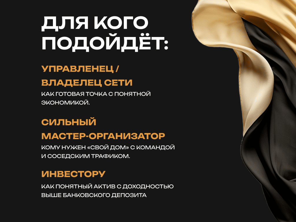 Мастеру-организатору, который хочет собственный салон с командой и локальным спросом.