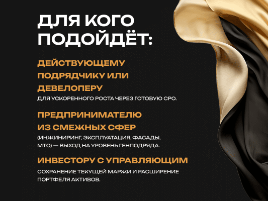 Действующему подрядчику или девелоперу — для ускоренного роста через готовую СРО