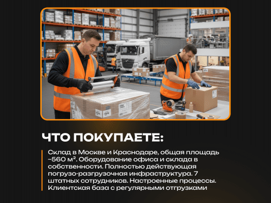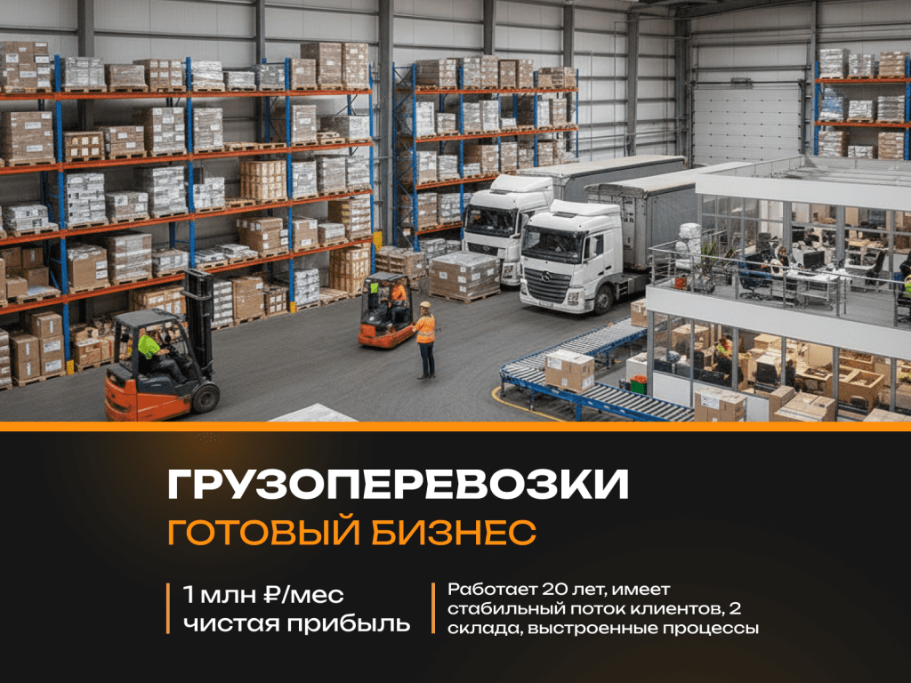 Компания работает 20 лет, имеет стабильный поток клиентов, два склада, выстроенные процессы и чистую прибыль около 1 000 000 ₽ в месяц.